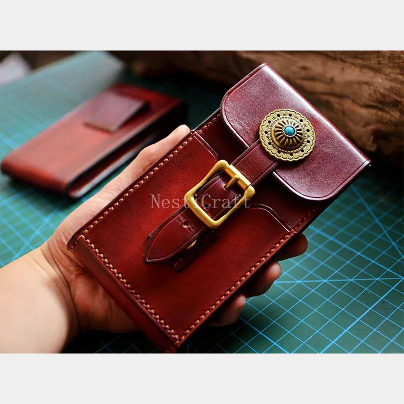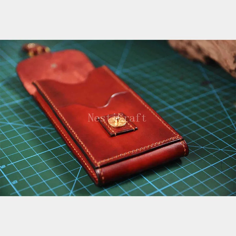 This handmade leather phone pouch is crafted from premium top-grain cowhide leather and finished using a traditional vegetable-tanning process, offering a natural texture, durability, and a refined handcrafted feel.