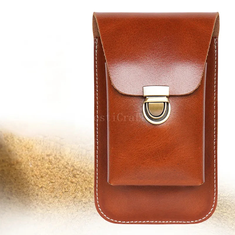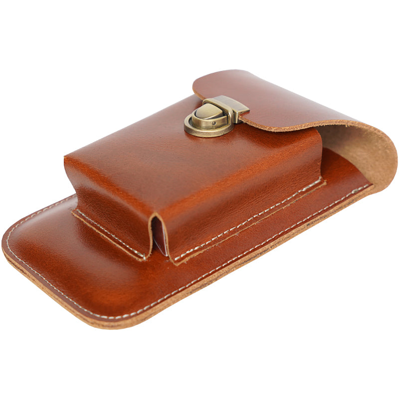 Top-Grain Leather Dual-Layer Phone Waist Bag with Cigarette Holder